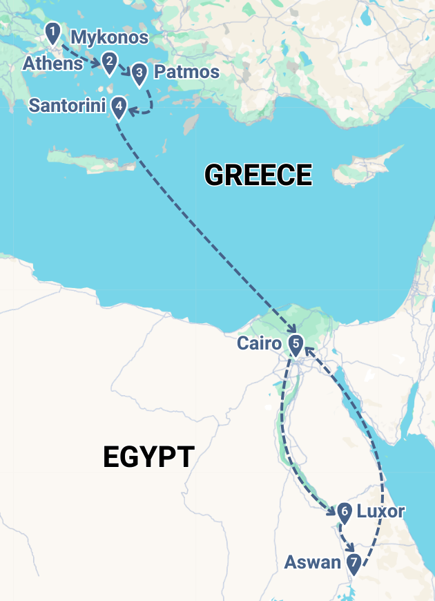 • Cities: Cairo, Athens, Giza, Aswan, Kusadasi