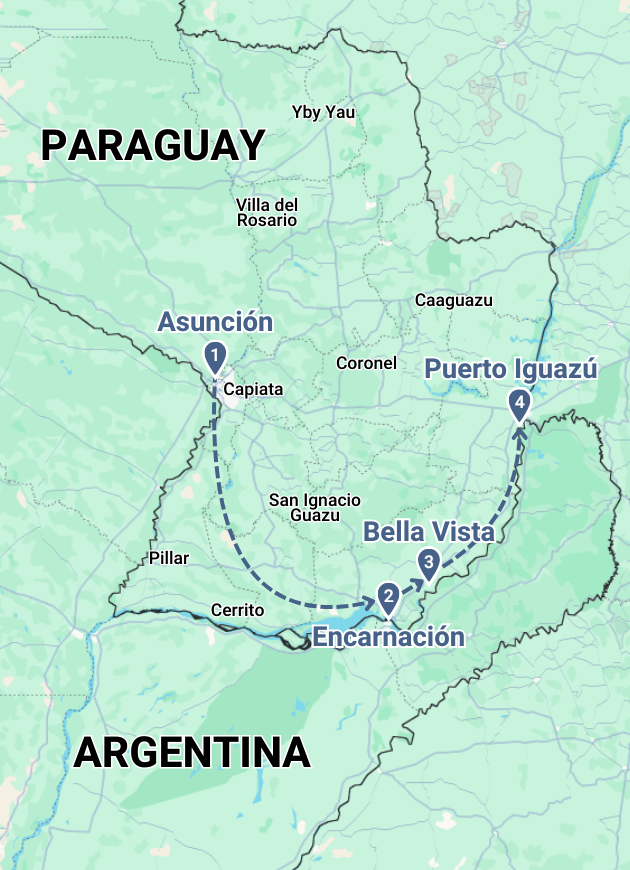 • Cities: Asunción, Bella Vista, Puerto Iguazú